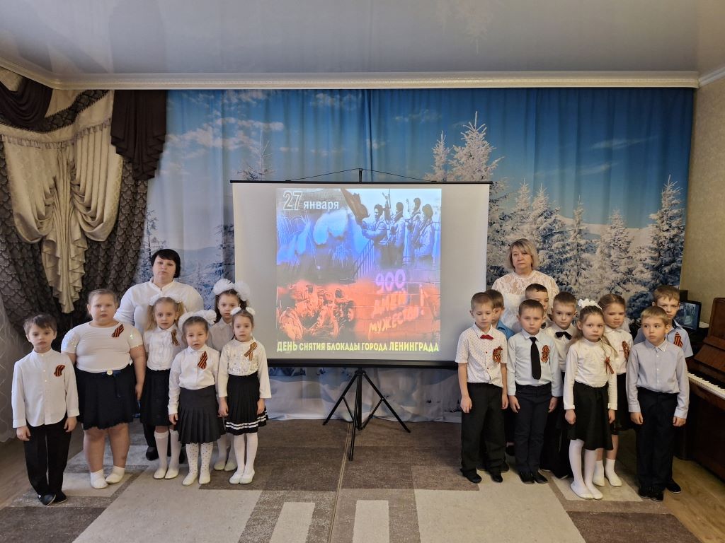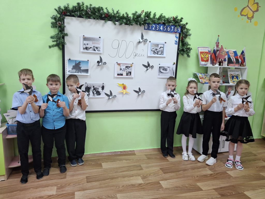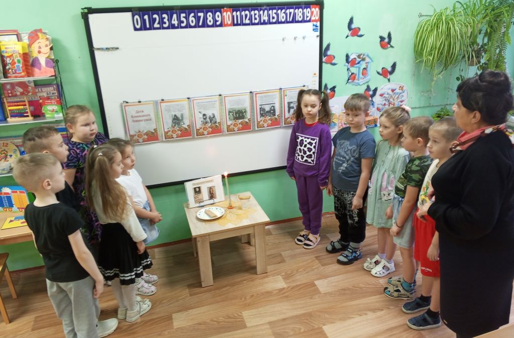 В этот день с детьми старшего возраста были проведены тематические мероприятия, приуроченные к этой важной дате. Цель мероприятий рассказать детям о подвиге ленинградцев, вызвать чувства гордости за свою Родину, воспитать способность сопереживать чужому горю. Детям рассказали о страшных днях в жизни ленинградцев, их стойкости и мужестве. Ребята посмотрели презентацию «Блокадный Ленинград», узнали о Дороге жизни и о том, как жили и выживали люди в это страшное время. С детьми была проведена беседа о хлебе и о его роли в жизни ленинградцев. Ребята узнали историю появления символа — маленькой бумажной птички, ставшей символом надежды и стойкости ленинградцев в годы блокады. Ребята мастерили свои собственные ласточки, создавая маленький мир добра.