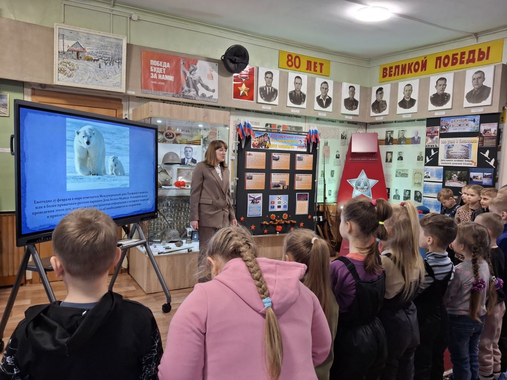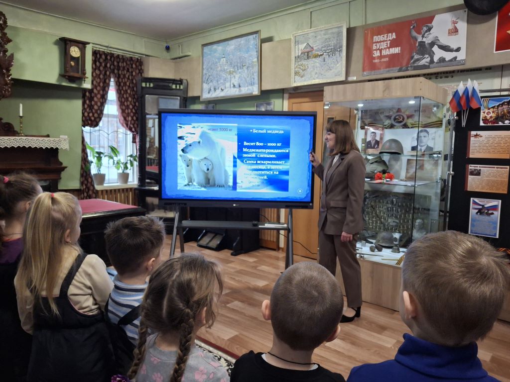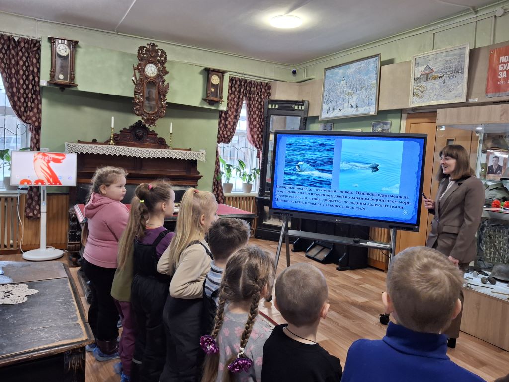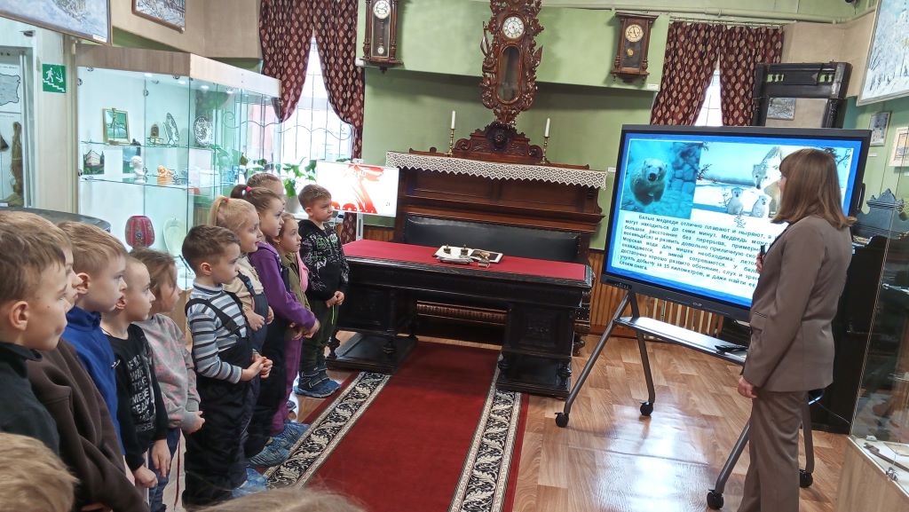 В рамках тематического дня ребята узнали, что белый медведь является символом Арктики и одним из самых крупных хищников на Земле, который занесен в Красную книгу из-за угрозы вымирания. Дети с интересом слушали рассказы о том, как белые медведи приспособились к жизни в суровых условиях, а также о важных мерах, которые предпринимаются для их защиты. В ходе посещения музея юные посетители познакомились и с обитателями Стародубских лесов, а благодаря интерактивной карте России, представленной, на новейшем интерактивном оборудовании, узнали ещё о многих животных, занесённых в Красную книгу РФ.